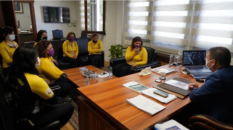 Mor Pedal Kadın Bisiklet Derneği Milas Belediye Başkanı Av. Muhammet Tokat’ı ziyaret etti. Milas Belediyesi Başkanlık Makamı’nda gerçekleşen ziyarette Mor Pedal Bisiklet Derneği Başkanı Yasemin Duygulu ve proje ekibi derneğin faaliyetleri ve projeleri hakkında Başkan Tokat’a bilgilendirmeler yaptı.