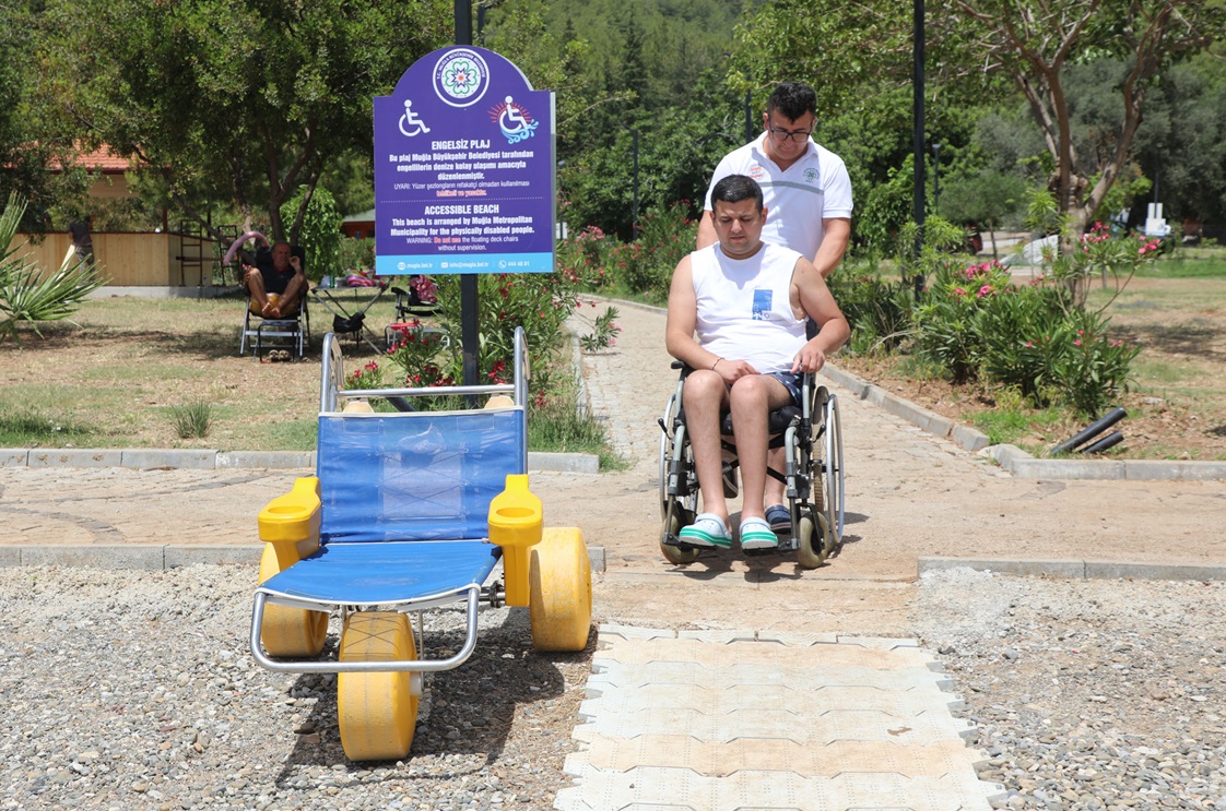 Muğla Büyükşehir Belediyesi il genelinde kurduğu engelsiz plajlarla engelli vatandaşların denize girmesini kolaylaştırıyor. Bu projeyle, hem engelli bireyler hem de aileleri deniz keyfini engelsiz bir şekilde yaşayabiliyor. Engelsiz plajdan faydalanan Egemen Köklüce “Engelsiz plajlar bizim için çok rahat oluyor, denize girip çıkma açısından” dedi.