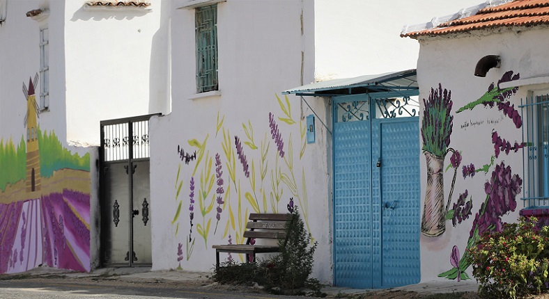 Muğla’nın Menteşe ilçesi Yerkesik Yeniköy Mahallesinde Muğla Büyükşehir Belediyesi’nin oluşturduğu lavanta bahçesinin ardından mahallede ev ve sokak duvarları lavanta figürleri ile boyandı.