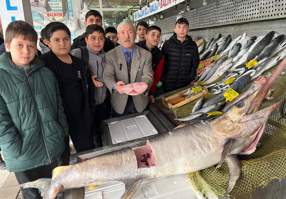 Öğrencilere balığın faydalarını anlatan Türkiye Deniz Canlıları Müzesi Kurucusu Kenan Balcı: "Kardeşlerimiz müzeyi ziyarete geldi. Onların şansına da kılıç balığı yakalanmıştı. Onlara ikram ettik. Balığın faydasını anlattık. En az haftada iki kez balık tüketmemiz gerekiyor. Balık anne sütünden sonra yıpranan dokuları onaran tek besin kaynağı. Her derde deva. Bugün ızgara, yarın tava. Sürekli balık yiyen insanlar kolay kolay hasta olmaz. Çünkü balık, vücudumuzu hastalıklara karşı koruyor. Direncini artırıyor. Denizlerimizde yüzlerce çeşit balık var. Hepsinin tadı başka. Lezzeti başka. Bu bizler için büyük bir nimet. O yüzden hem denizlerimizin, hemde balıklarımızın kıymetini bilelim" dedi.