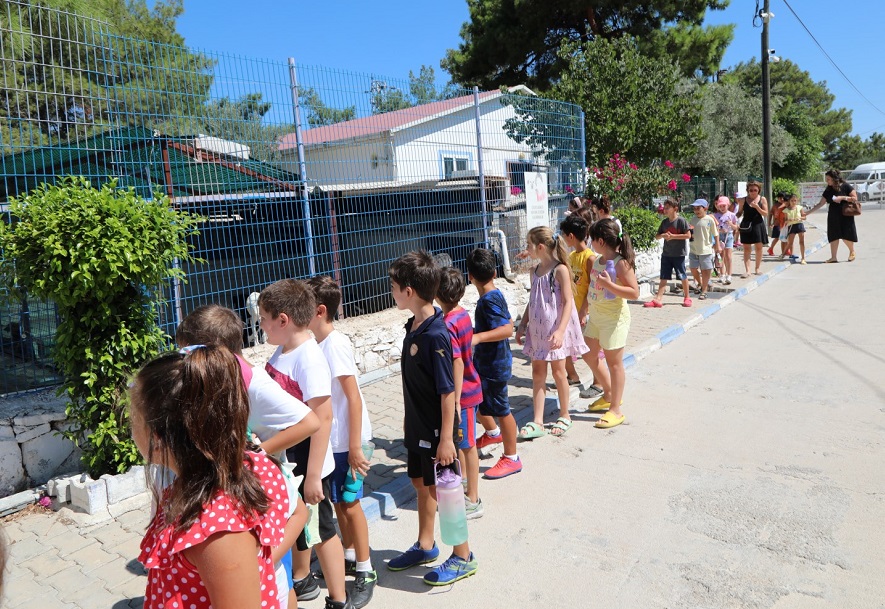 Bodrum'da yaz okulu eğitimi gören 80 öğrenci, Bodrum Belediyesi Torba Sokak Hayvanları Geçici Bakımevi ve Rehabilitasyon Merkezi'nde bulunan dostlarını ziyaret etti.