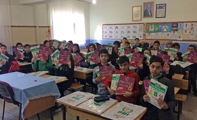İHH İnsani Yardım Vakfı, 19 ilde eğitim öğretim hayatına devam eden yaklaşık 50 bin ortaokul öğrencisine yardımcı ders kitabı ve akıllı defter dağıttı.