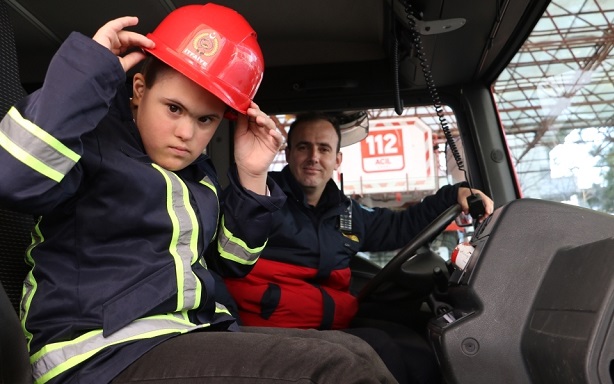 İtfaiye kıyafeti giyerek itfaiye aracına binen öğrenciler daha sonra İtfaiye Daire Başkanı Gürhan İnal'ın yardımıyla itfaiye aracıyla su sıkmanın mutluluğunu yaşadı. Manisa Kanat Özel Eğitim ve Rehabilitasyon Merkezi'nin öğrencileri, Manisa Büyükşehir Belediyesi İtfaiye Daire Başkanlığı'nı ziyaret etti. 21 Mart Dünya Down Sendromu Farkındalık Günü dolayısıyla itfaiye ekipleriyle bir araya gelen özel öğrenciler, hem eğitim aldı hem de eğlenme fırsatı buldu. Manisa Büyükşehir Belediyesi İtfaiye Daire Başkanı Gürhan İnal ve itfaiye ekipleri tarafından karşılanan özel öğrencilere aileleri de eşlik etti. Daire Başkanı İnal, Manisa Büyükşehir Belediye Başkanı Cengiz Ergün'ün selamlarını ileterek Dünya Down Sendromu Farkındalık Gününü kutladığını belirtti. İlk olarak yangın farkındalık eğitimi alan öğrenciler, daha sonra itfaiye kıyafeti giyerek itfaiye aracına bindi. Sonrasında İtfaiye Daire Başkanı Gürhan İnal'ın yardımıyla itfaiye aracıyla su sıktı. Daire Başkanı İnal, daha sonra Büyükşehir Belediye Başkanı Cengiz Ergün'ün öğrencilere gönderdiği hediyeleri takdim etti.