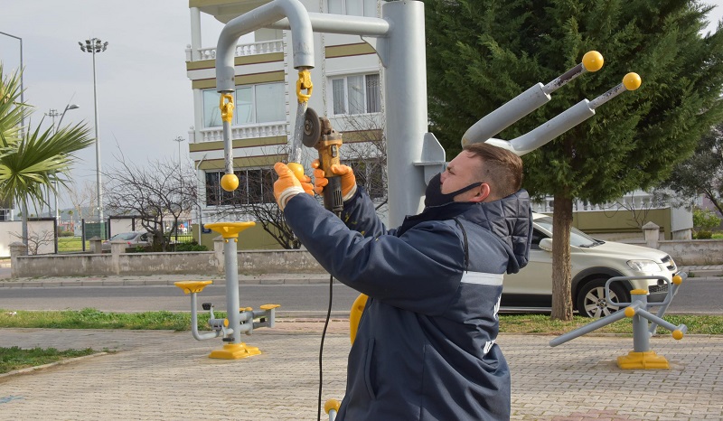 Aliağa Belediyesi Park ve Bahçeler Müdürlüğü Ekipleri, belirlenen program kapsamında mahallelerdeki parkların bakım ve onarımını yapıyor. Çalışmalar kapsamında parklarda bulunan oyun grupları, park mobilyaları, basketbol ve voleybol sahaları, açık hava spor aletleri ve oturma grupları elden geçiriliyor. Oyun grupları, duvarlar ve park mobilyaları üzerlerine yazılan hoş olmayan yazılar boya ile kapatılıyor. Ekipler, Hilal Masa’nın ALO 153 ya da 0530 277 22 22 numaralı WhatsApp, Telegram ve BiP hattına vatandaşlar tarafından iletilen talepler doğrultusunda da parklarda çalışmalar gerçekleştiriyor.