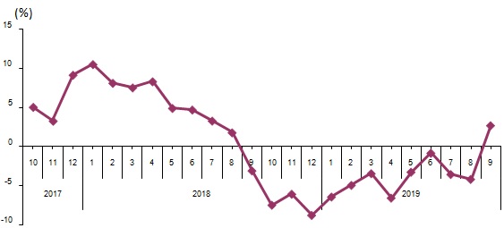 Takvim etkilerinden arındırılmış cari fiyatlarla perakende ciro 2019 yılı Eylül ayında bir önceki yılın aynı ayına göre %11,2 arttı. Aynı ayda gıda, içecek ve tütün satışları %16,1, gıda dışı satışlar (otomotiv yakıtı hariç) %12,3, otomotiv yakıtı satışları %1,8 arttı.