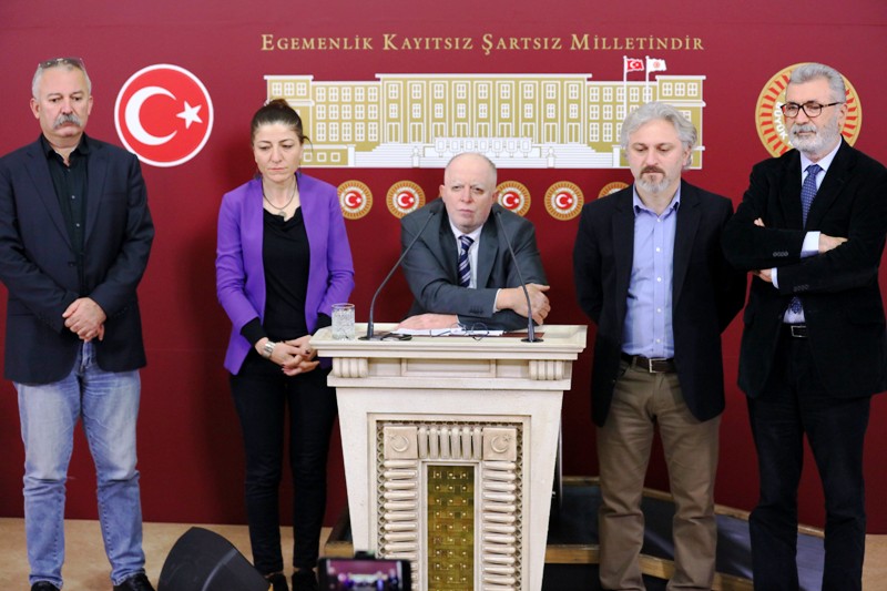 HDP İstanbul Milletvekili Musa Piroğlu, Meclis'te partisinden bir grup milletvekiliyle birlikte düzenlediği basın toplantısında Grup Yorum üyelerinin 190 gündür açlık grevinde olduğunu söyledi.