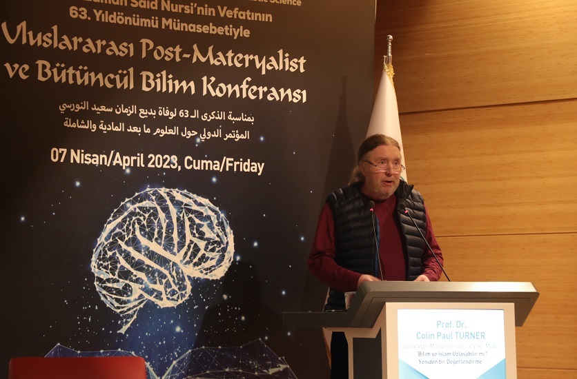 Bediüzzaman Said Nursi’nin vefatının 63. yıldönümü münasebetiyle düzenlenen “Uluslararası Post-Materyalist ve Bütüncül Bilim Konferansı”na konuşmacı olarak katıldı. Hayattaki bazı şeylerin mantığa indirgenemediğini belirten Prof. Dr. Colin Paul Turner, bilimin etik, değer ve ahlak gibi çok karmaşık insani problemlere indirgendiğinde ortaya sorunların çıktığını ifade etti.