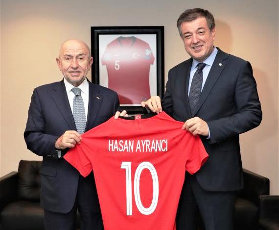 TFF'nin Riva'daki idari merkezinde gerçekleşen ziyarette, Başkan Nihat Özdemir tarafından rektör Hasan Ayrancı'ya A Milli Takım forması takdim edildi.
