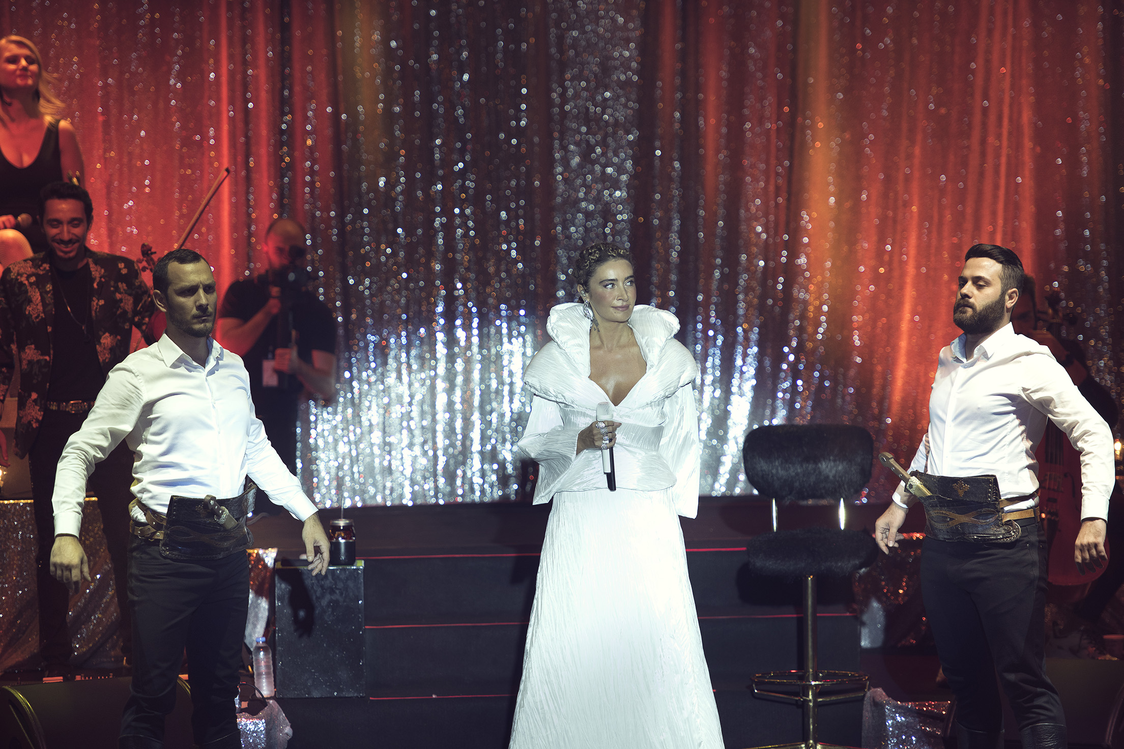 Sahnede beyazlar içinde göz kamaştıran sanatçı, şarkılarıyla olduğu kadar güzelliğiyle de büyüledi.
