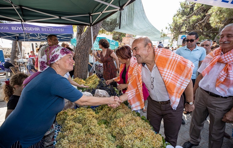 Karaburun’un en özel günlerinden birinde yöre halkıyla birlikte olmanın mutluluğu içerisinde olduğunu söyleyen İzmir Büyükşehir Belediye Başkanı Tunç Soyer, “Üzüm, zeytin ve keçi coğrafyası olan Karaburun, Anadolu bereket uygarlığının izlerini yaşatmaya devam ediyor. Etkisini giderek artan bir şekilde hissettiğimiz iklim krizi gibi sorunlara kalıcı çözümler üretmek için, doğamızla uyumu, bir kültüre dönüştürmek zorundayız. Bunun için atmamız gereken en temel adım, tarımın temel girdileri olan tohumu, suyu ve toprağı korumak. Gıda güvenliğinin teminatı olan üreticilerimizin doğdukları yerde doymasını sağlamak. Tüm bu anlattıklarıma İzmir’de biz kısaca 'Başka Bir Tarım' dedik ve bugün adım adım gerçekleştiğini gördüğümüz bir hayalle yola çıktık. Başka bir tarım mümkün!. Biz diyoruz ki tarım sadece büyük ölçekli üreticilerin, sanayi kuruluşlarının yapabileceği bir şey değil. Tarih boyunca da böyle olmadı. Tarih boyunca hep küçük üreticinin, doğduğu yerde doymasını sağlayan bir sektör olmasını sağlamıştır. Tam da bu nedenle Anadolu dünyanın tahıl ambarı olmuştur. Köylü köyünü terk ediyor işsiz ordusuna katılıyor. Bizim tarım kültürümüz giderek yok oluyor. Peki bu bir kader mi? Asla değil! Çok iyi biliyoruz ki içine düştüğümüz hayat pahalılığı, bu yüksek enflasyon, ekonomik kriz asla bir kader değil” dedi.