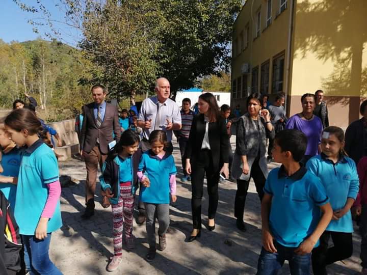 Okul Müdürü Celal Karslı ve Öğrenciler tarafından karşılanan Kaymakam Özdemir, Okul Müdürü Celal Karslı’dan okul ve çalışmalar hakkında bilgi aldı.