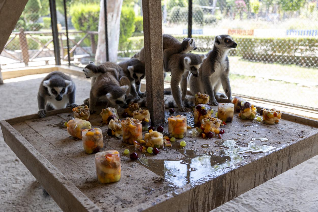 Buzlu meyveler lemur, maymun, babun ve midilli gibi beslenme rutininde meyveye yer verilebilen türlere verilirken; kurt, kaplan, aslan, ayı gibi türler de yağmurlama sistemi ile yukarıdan verilen suyla serinletiliyor. Suyla arası daha iyi olan türler ise, gün içerisinde hortumla yıkanarak serinlemeleri sağlanıyor.