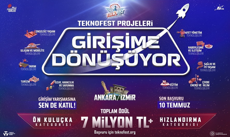 Dünyanın en büyük Havacılık, Uzay ve Teknoloji Festivali TEKNOFEST’te heyecan tüm hızıyla sürüyor. İstanbul’da nisan ayında 2 milyon 547 bin ziyaretçisi ile rekorlara imza atarak bilim, teknoloji ve uzayla dolu unutulmaz izler bırakan TEKNOFEST, 2023 yılının ikinci ve üçüncü durağında yepyeni bir yarışma modeliyle 30 Ağustos – 3 Eylül 2023 tarihleri arasında Başkent Ankara’da, 27 Eylül – 1 Ekim 2023 tarihlerinde ise Ege’nin incisi İzmir’de gerçekleşecek. Tam bağımsız bir Türkiye için “Milli Teknoloji Hamlesi” vizyonuyla milyonları kucaklayarak bir araya getiren TEKNOFEST’te, Girişim Yarışması modeli ile 10 farklı temada yarışma sonrası girişime dönüştürülmek istenen projelerin gelişimine tanıklık edilecek.