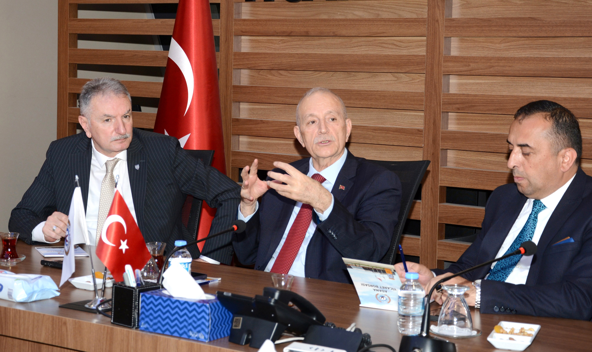 Adana Ticaret Borsası (ATB) Meclis Başkanı Osman Bağış, YK Üyeleri Hamit Tezcan ve Şahin Güneşer ile Genel Sekreter T. Gökhan Öztürk'ün hazır bulunduğu ziyarette Türkiye genelinde yaşanan sıkıntıların karamsarlık çizdiğini söyleyen ATB Başkanı Şahin Bilgiç, "TMO Genel Müdürümüz Ahmet Güldal ve Bitkisel Üretim Genel Müdürümüz Uğur Erdem'i ATB'mizde görmekten mutlu olduğumuzu belirtmek isterim. Çukurova tarımdaki potansiyelin en iyi ve yüksek olduğu bölgelerin başında geliyor. Buna rağmen son yıllarda yaşanan sıkıntılar üreticilerimizi tarım sektörünü karamsar hale getirdi. Önce kuraklık arkasından donla başlayan tabi afetler, şu anda Buğday ürün hasatlarındaki ciddi verim kayıpları ile üreticilerimiz ciddi manada sarsıldı. Temennimiz üreticiye bu sezonu rahat geçirebilecek tarzda farklı desteklerin sunulmasıdır. Devlet destekleri, üretim çeşitliliğini teşvik edecek ve üreticilerin risklerini azaltmaya yönelik olmalıdır. Çukurova ürettiği ürünlerle hem bölgeyi hem ülkeyi besliyor, hem de tarımsal ihracata ciddi katkı sağlıyor. Don afetinden ciddi manada narenciye etkilendi, sert çekirdekliler etkilendi. Bölgedeki kirazından bir çok meyveye, üretilen çok fazla tarımsal üründe ciddi olumsuz etkilenmeler oldu. Bitkisel üretim ve her çeşit tarımsal üretimde sürdürülebilirlik çok önemlidir."