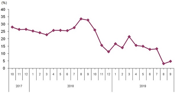 Takvim etkilerinden arındırılmış inşaat ciro endeksi, 2019 yılı Eylül ayında bir önceki yılın aynı ayına göre %16,1 azaldı. Mevsim ve takvim etkilerinden arındırılmış inşaat ciro endeksi ise bir önceki aya göre %1,4 azaldı.