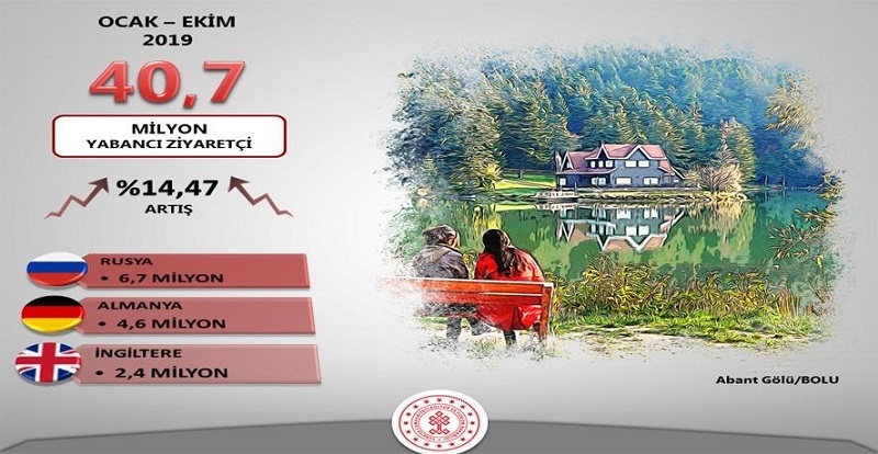 Kültür ve Turizm Bakanlığı’nın Ocak-Ekim 2019 dönemi sınır giriş ve çıkış istatistiklerine göre, en çok ziyaretçi gönderen ülkeler sırasıyla Rusya, Almanya ve İngiltere oldu. Yılın ilk 10 ayında Türkiye’ye en çok ziyaretçi gönderen ülke sıralamasında yüzde 16,94 artışla Rusya Federasyonu birinci, yüzde 11,88 artış ile Almanya ikinci, yüzde 13,16 artış ile İngiltere üçüncü oldu. İngiltere’yi Bulgaristan ve İran izledi.