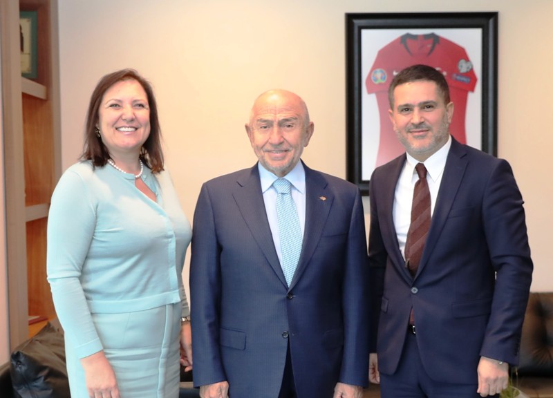 İSTANBUL (e-ha) - Turkuvaz Medya Grubu İcra Kurulu Üyesi ve Turkuvaz Reklam Dergi Grubu Genel Müdürü Yasemin Gebeş ile Genel Müdür Yardımcısı Ümit Erçelik, Türkiye Futbol Federasyonu Başkanı Nihat Özdemir'i ziyaret etti.