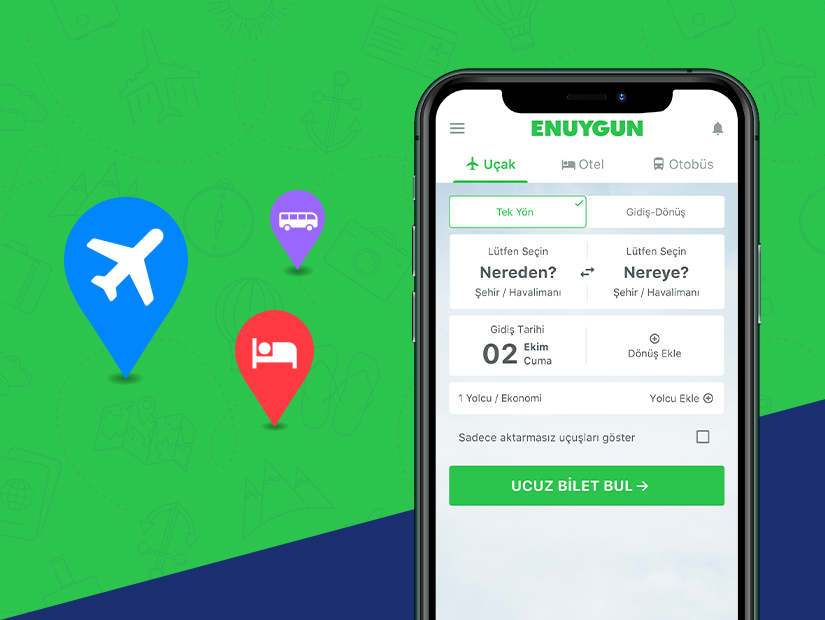 Türkiye’nin seyahat sitesi Enuygun.com, teknoloji yatırımlarına devam ediyor. Enuygun.com, ENUYGUN mobil uygulamasındaki son güncellemeyle beraber Türkiye’de uçak bileti, otobüs bileti ve otel hizmetini aynı anda bulabileceğiniz tek uygulama özelliğine sahip oldu. Türkiye’de bir ilki gerçekleştiren ENUYGUN, müşteri deneyimine odaklanarak tüm seyahat ihtiyaçlarının ve satın alma sonrası desteğin tek bir uygulama üzerinden karşılanabildiği son güncellemesi ile kullanıcıları için hayatı kolaylaştırmaya odaklanıyor.