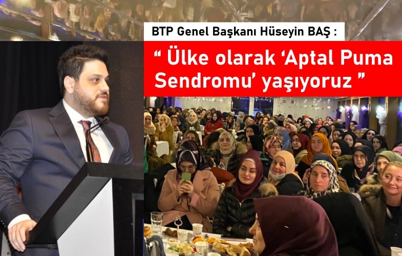 BTP Genel Başkanı Hüseyin Baş: Bugün ülke olarak, siyaset olarak ‘Aptal Puma Sendromu’ yaşıyoruz. Bir avın peşinde koşuyoruz ama attığımız taş ürküttüğümüz kuşa değmiyor. Bağımsız Türkiye Partisi (BTP) Genel Başkanı Hüseyin Baş partisinin İstanbul Kadın Kolları tarafından düzenlenen iftar programına katıldı. İstanbul Boğazı’nda tekne turu şeklinde gerçekleşen iftarda konuşan BTP lideri, Türkiye’nin en önemli gündeminin ekonomi olmasına rağmen bu konunun gündemden uzak tutulmak istendiğini söyledi. Baş, “Gözünüzün önüne üç tane samanı koyup ateşe veriyorlar, tam şurada samanlar yanıyor, zannediyorsunuz ki ormanlar yanıyor. Bunların ortaya koyduğu meselelerin hiçbir kıymeti harbiyesi yok. Asıl mesele, tek çözümü bizim elimizde olan meselelerdir. Asıl mesele ekonomidir” dedi.