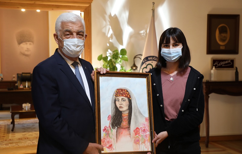 Muğla Büyükşehir Belediyesi Başkanlık binasında pandemi kuralları dikkate alınarak düzenlenen ödül törenine resim yarışmasında dereceye giren katılımcılar ve aileleri katıldı. Resim yarışmasında dereceye girenler adına konuşma yapan Rabia Çoban, böyle bir yarışma düzenlemesinin ve sanata destek verilmesinin kendilerini çok mutlu ettiğini söyledi. Yarışmaya katılmak için çok heyecanlandığını belirten Rabia Çoban, Osman Hamdi Bey’in hayatını araştırarak çalışmaya başladığını ve yaptığı resmin ödül almasının kendisini bu alanda motive etiğini söyledi. Katılımcı aileler adına bir konuşma yapan Özge Ertürk’de Büyükşehir Belediyesi’nin umut konusunda resim yarışması düzenlemesinin özellikle bu dönemde çok anlamlı olduğunu belirtti ve umudu hiçbir zaman kaybetmemeleri gerektiğini söyledi. Ayrıca ödül töreninde Rabia Çoban Başkan Gürün’e kendi yaptığı resim çalışmasını hediye etti.