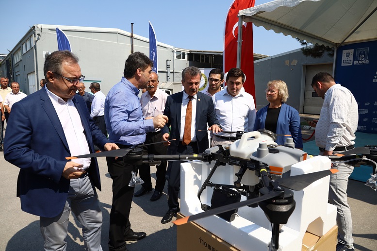 Bursa’da kırsal kalkınmayı sağlayarak köyden kente göçün önüne geçmeyi hedefleyen Büyükşehir Belediyesi, çiftçilere yönelik ekip ve ekipman desteklerini hız kesmeden sürdürüyor. Son alarak Mustafakemalpaşa, İznik, Nilüfer, Mudanya, Gemlik, Orhangazi, Yenişehir, Orhaneli, Keles, Gürsu, Karacabey, Büyükorhan, Harmancık ve Osmangazi ilçelerimizdeki 53 kırsal mahalleye salça makinesi, ceviz soyma makinesi ve ceviz silkme makinesi dağıtıldı. Bunun yanında bu yıl özellikle ayçiçeğinde görülen tırtıl zararlısı ile mücadelede sıkça kullanılan dronelerden de bir tane Mustafakemalpaşa ilçesine gönderildi.