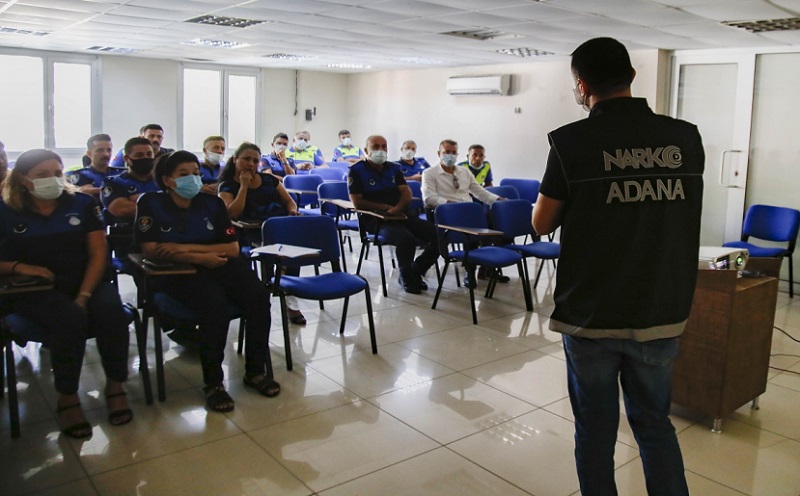 Adana Büyükşehir Belediyesi Zabıta Daire Başkanlığı’nda görevli zabıta personeline, uyuşturucuyla mücadeleye sağladıkları katkının daha bilinçli ve etkin olması amacıyla Narkorehber eğitimi verildi. Adana Büyükşehir Belediye Başkanı Zeydan Karalar’ın üzerinde hassasiyetle durduğu ve bu yıl “Narkoanne” proje adı verilen eğitimde 75 zabıta personeli iki gün boyunca (11-12 Ağustos 2021) bilgilendirildi.