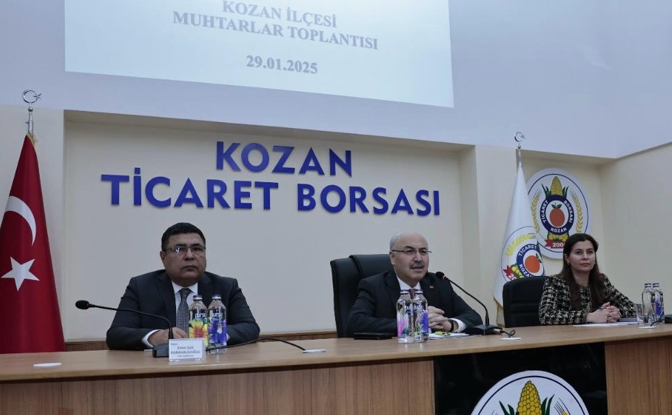 Kozan Ticaret Borsasında; Vali Yardımcıları Emin Sait Karahaliloğlu ve İbrahim Küçük, Kozan Kaymakamı Bahattin Alp Arslanköylü, İl Emniyet Müdürü Ahmet Hakan Arıkan, İl Jandarma Komutanı Tümgeneral Coşkun Sel, Kozan Belediye Başkanı Mustafa Atlı ile ilgili kurum amirleri ve muhtarların katılımıyla düzenlenen toplantıda, muhtarların ilettiği hususlara yönelik fikir alışverişinde bulunuldu.