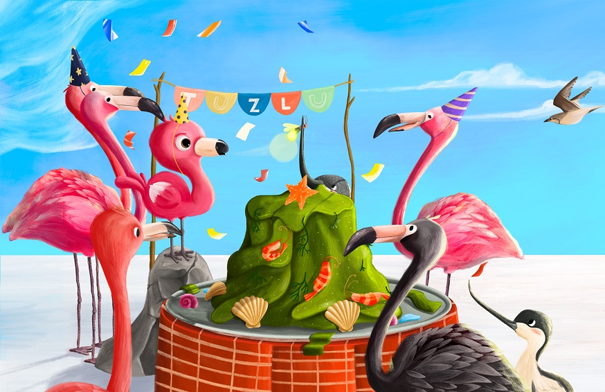 Tuz Gölü, Anadolu’da Allı Turna olarak da bilinen flamingoların ülkemizde ve dünyada en önemli yaşam alanlarından birisi. Tuz Gölü’nün, iklim krizi ve bilinçsiz su tüketimi nedeniyle su seviyesi hızla azalıyor ve bu durum 200’den fazla canlı türünün yaşamını tehdit ediyor. Göçebe kuş türü olmayan flamingolar ise üreme alanlarındaki iklim ve su seviyesi değişikliğinden etkilenerek göç etmek zorunda kalıyor. Finish, hikayesinin kahramanı olan yavru flamingo Tuzlu’nun ve Tuz Gölü’nün hikayesini kaleme alırken gerçek bilgileri gösteriyor.