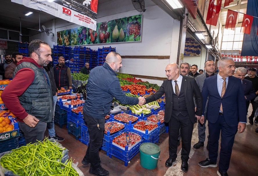 Etkinlik öncesi hal esnafını ziyaret eden Başkan Tunç Soyer, konuşmasında Türkiye’deki tarım politikalarından söz ederek “Türkiye, daha 50-60 yıl öncesine kadar, kendi kendine yetebilen, dahası etrafındaki ülkeleri de doyurabilen bir tarım ülkesi, bir tahıl ambarı oldu. Benim yaşlarımda olan herkesin, özellikle de yerli malı haftasında öğretmenlerinden duyduğu bu sözler, yazık ki artık geçmişte kaldı. Bir de Hakkâri’den Edirne’ye her ilin bitkisel ve hayvansal ürünlerinin yer aldığı bir Türkiye Haritası vardı. O da kayboldu. 50-60 sene içinde çok şey kaybettik. Ülkemizi postallarla işgal edemeyenler, zehirli tohumlarıyla ve kimyasallarıyla işgal ettiler. En büyük darbe, hiç kuşkusuz bir gecede 16 bin köyün kapatılması ile gerçekleşti. Tarım geleneğini sürdüren aile çiftçiliği, büyük şirketlere kurban edildi. Bereketli topraklarımız ve meralarımız yavaş yavaş yok edildi. Düşünün, anavatanı Anadolu olan buğdayı, bir zamanlar ambarı olduğumuz tahıl ürünlerini üretmek yerine dışarıdan ithal eder konuma geldik. Bu bizim için çok acı bir tablo” ifadelerini kullandı.