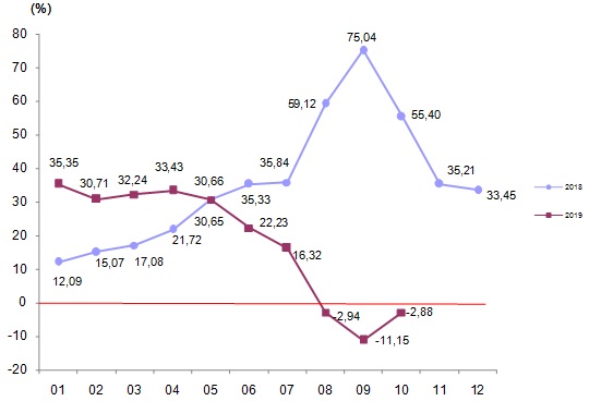 TÜİK, “Ekim 2019, Yurt Dışı Üretici Fiyat Endeksi”ni açıkladı. Buna göre, sanayinin iki sektörünün bir önceki aya göre değişimleri; madencilik ve taşocakçılığı sektöründe %0,81, imalat sanayi sektöründe ise %1,18 artış olarak gerçekleşti. Bir önceki aya göre en fazla artış; %9,58 ile tütün ürünleri, %3,07 ile kağıt ve kağıt ürünleri, %2,53 ile makine ve ekipmanlar (b.y.s.) sektöründe gerçekleşti. Buna karşılık metal cevherleri %0,28, diğer mamul eşyalar %0,17 ve ana metaller %0,06 ile bir önceki aya göre endeksin düştüğü alt sektörler oldu.