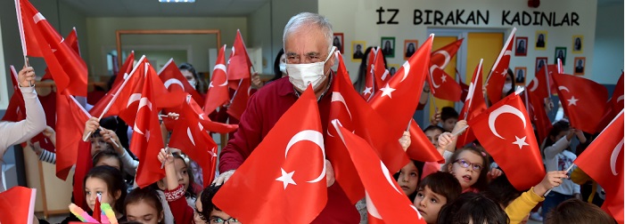 Ardından hep bir ağızdan İstiklal Marşı'nı okudular. 18 Mart ruhunu yaşayan ve yaşatan miniklerin programına Çanakkale Belediye Başkanı Ülgür Gökhan'da katılarak çocukların coşkularına ortak oldu.