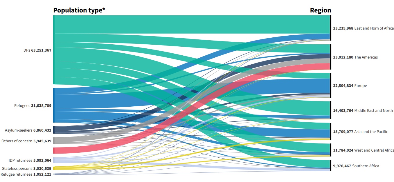 Zorla yerinden edilen ve vatansız kalan 122,6 milyon insan, dünya genelindeki farklı kriz bölgelerinde bulunuyordu. Bu sayı, mülteciler, ülke içinde yerinden edilmiş kişiler, sığınmacılar ve vatansızlar gibi farklı kategorilerde insanları içerir. İşte bu insanların yoğunlaştığı bazı bölgeler ve nedenleri: